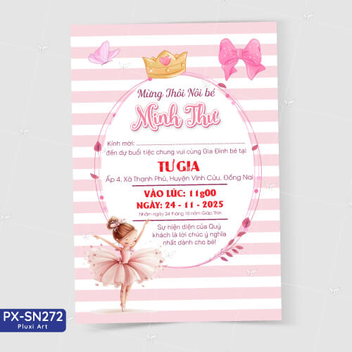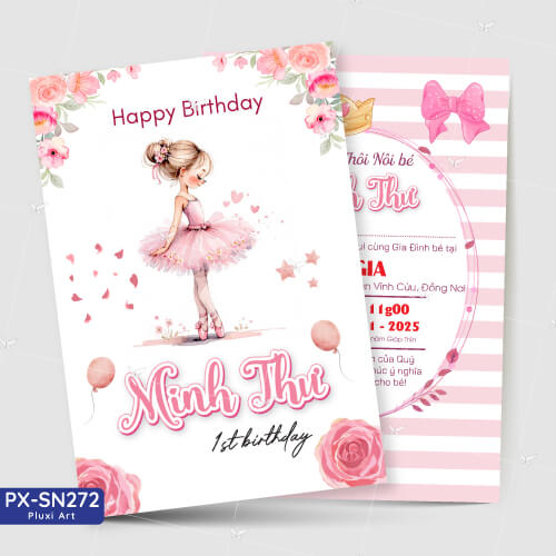 Thiệp thôi nôi – sinh nhật bé gái | Thiệp Pluxi PX_SN272